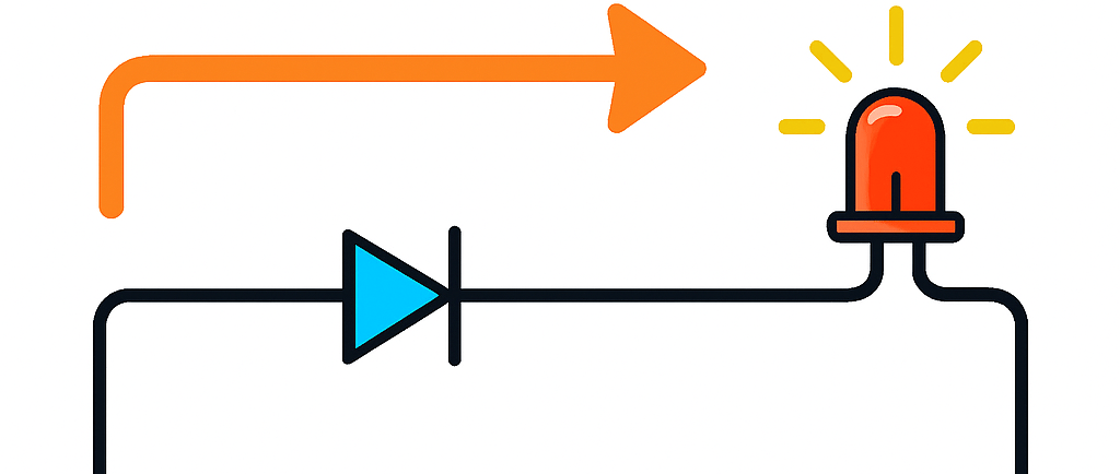 O diodo é um componente semicondutor formado por duas camadas: o anodo (positivo) e o catodo (negativo). Quando a tensão é aplicada corretamente — com o anodo mais positivo que o catodo — o diodo conduz corrente facilmente. Inverta a polaridade, e ele bloqueia a passagem, como uma válvula unidirecional.